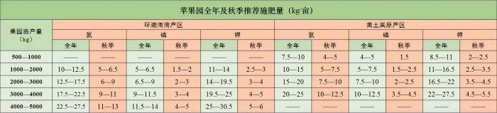 (二)科学施肥。未施基肥的果园抓紧施基肥,一般应在土壤封冻前完成,越早越好。总体原则按照有机肥为主、化肥为辅、重视中微量元素。每亩施用生物有机肥150~200公斤和商品有机肥600~800公斤(或羊粪、牛粪等腐熟农家肥1500~2500公斤);大量元素肥见下图,硅钙镁钾肥或其他土壤调理剂60~80公斤。土壤缺锌和硼的果园,每亩施用硫酸锌1~1.5公斤和硼砂0.5~1公斤。开沟或挖穴施肥,深度40cm左右,肥和土混匀后回填。