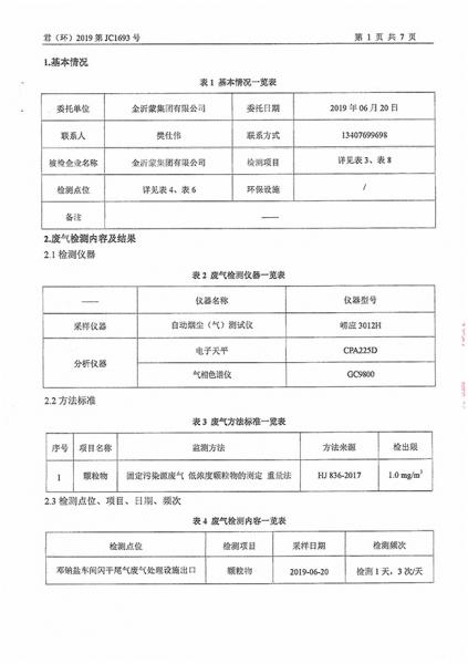 金沂蒙集团6月第1次检测报告